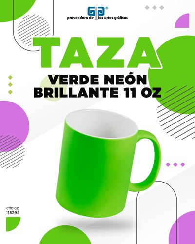 TAZA VERDE NEON BRILLANTE 11 OZ PARA SUBLIMAR 325 ML SUBLIMACION ENCOGRAPICS